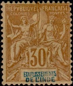Type: stamp Issuer: French India Date: 1892 Denom: ?