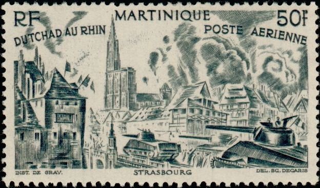 Visibility: public Image owner: none airmail 6/6/1946 50fr grayblk issue=Chad to Rhine unwmk Crops No visible images cropped from this one. Measurements Resolution is unknown. Source Source name: Colnect File URL: http://i.colnect.net/images/b/849/464/Chad-to-the-Rhine.jpg Uploaded August 27, 2014, 4:54 pm by Stan Shebs |