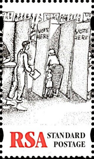 Visibility: public Image owner: none postage 4/26/1997 1r standard multi issue=First Democratic Elections unwmk Crops No visible images cropped from this one. Measurements Resolution is unknown. Source Source name: Colnect File URL: http://i.colnect.net/b/5805/214/Voting-Station.jpg Uploaded January 20, 2020, 2:39 am by Stan Shebs |