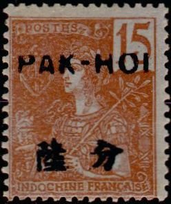 Visibility: public Image owner: none postage 10/1906 15c redbrn pc=blgray issue=1906 d=France ovpt=PAK-HOI oc=blk on=issuer=IndoChina-1904-15c unwmk Crops No visible images cropped from this one. Measurements Resolution is unknown. Source Source name: Colnect File URL: http://i.colnect.net/b/867/067/Type-Grasset.jpg Uploaded August 27, 2014, 5:06 pm by Stan Shebs |