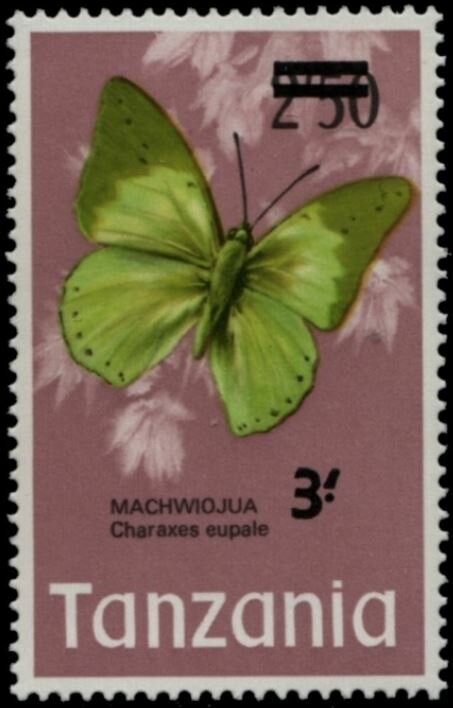 Visibility: public Image owner: none postage 11/17/1975 3sh multi dt=butterflies (1973 Tanzania) d=Charaxes eupale (1973) ovpt=bars//3.' oc=blk on=1973-2.50sh unwmk perf=14.5 Crops No visible images cropped from this one. Measurements Resolution is unknown. Source Source name: Colnect File URL: http://i.colnect.net/b/5517/307/Common-Green-Charaxes-Charaxes-eupale.jpg Uploaded January 27, 2020, 9:13 pm by Stan Shebs |