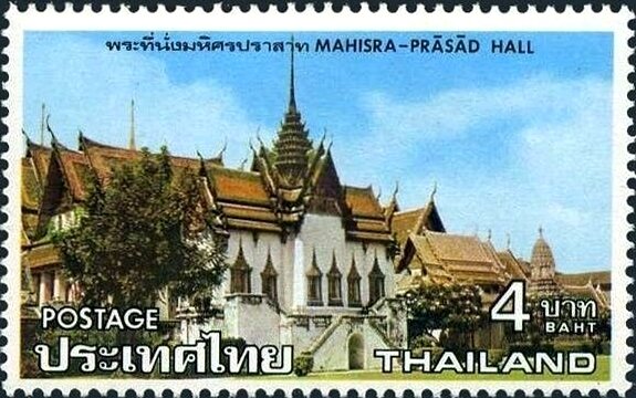 Visibility: public Image owner: none postage 12/5/1976 4b multi dt=Thai Royal Halls d=Mahisra-Prasad wmk=HEF perf=14.25x14.75 Crops No visible images cropped from this one. Measurements Resolution is unknown. Source Source name: Colnect File URL: http://i.colnect.net/b/6059/678/Mahisra-Prasad.jpg Uploaded January 27, 2020, 10:21 pm by Stan Shebs |