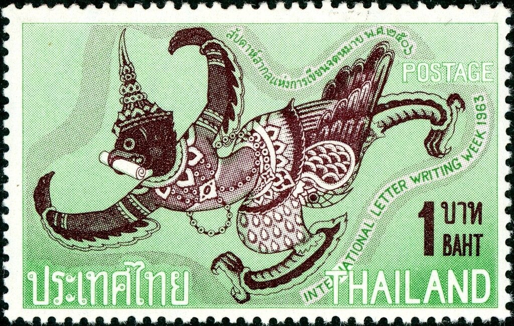Visibility: public Image owner: none postage 10/7/1963 1b d=garuda carrying letter wmk=zigzag lines (Thailand) perf=13.5 Crops No visible images cropped from this one. Measurements Resolution is unknown. Source Source name: Colnect File URL: http://i.colnect.net/b/6352/936/1963-International-Letter-Writing-Week.jpg Uploaded January 28, 2020, 5:38 am by Stan Shebs |
