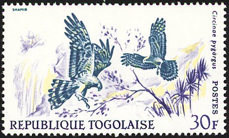 Visibility: public Image owner: none postage 8/19/1967 30fr multi dt=Wildlife (1967 Togo) d=Circus pygargus (1967) unwmk perf=14x13.5 Crops No visible images cropped from this one. Measurements Resolution is unknown. Source Source name: Colnect File URL: http://i.colnect.net/b/5138/151/Montagu-s-Harrier-Circus-pygargus.jpg Uploaded January 28, 2020, 5:52 pm by Stan Shebs |