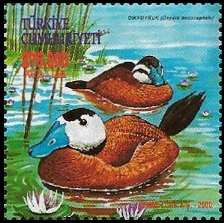 Visibility: public Image owner: none postage 6/5/2000 275000l multi issue=World Environment Day 2000 dt=birds (2000 Turkey) d=Oxyura leucocephala (2000) unwmk perf=13.25 Crops No visible images cropped from this one. Measurements Resolution is unknown. Source Source name: Colnect File URL: http://i.colnect.net/b/5344/327/White-headed-Duck-Oxyura-leucocephala.jpg Uploaded January 29, 2020, 11:57 pm by Stan Shebs |