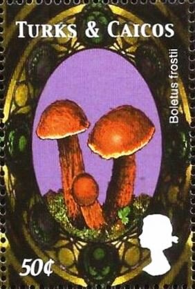 Visibility: public Image owner: none postage 7/6/2000 50c multi dt=Fungi (2000 Turks & Caicos Islands) d=Boletus frostii wmk=mult crown & script CA perf=14 Crops No visible images cropped from this one. Measurements Resolution is unknown. Source Source name: Colnect File URL: http://i.colnect.net/b/5767/933/Boletus-frostii.jpg Uploaded January 30, 2020, 4:34 pm by Stan Shebs |