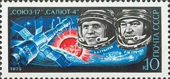 Visibility: public Image owner: none postage 3/28/1975 10k multi issue=Cosmonauts Day 1975 d=Soyuz-17, Salyut-4, A.A. Gubarev, G.M. Gretshko unwmk Crops No visible images cropped from this one. Measurements Resolution is unknown. Source Source name: Colnect File URL: http://i.colnect.net/b/951/900/A-A-Gubarev-and-G-M-Gretshko.jpg Uploaded August 27, 2014, 5:45 pm by Stan Shebs |