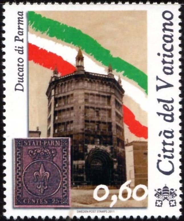Visibility: public Image owner: none postage 3/21/2011 0,60(€) multi issue=Italy unification 150th dt=old stamps & scenes d=Duchy of Parma unwmk Crops No visible images cropped from this one. Measurements Resolution is unknown. Source Source name: Colnect File URL: http://i.colnect.net/b/5301/553/Duchy-of-Parma.jpg Uploaded February 5, 2020, 6:52 pm by Stan Shebs |