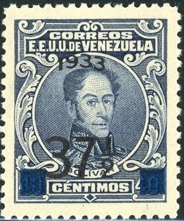 Visibility: public Image owner: none postage 1/1934 37 1/2c dpbl d=Bolivar (1924 Venezuela) ovpt=1933//value oc=blk on=1924-40c-dpbl unwmk perf=12.5 Crops No visible images cropped from this one. Measurements Resolution is unknown. Source Source name: Colnect File URL: http://i.colnect.net/b/5325/612/Simon-Bolivar.jpg Uploaded February 6, 2020, 12:38 am by Stan Shebs |