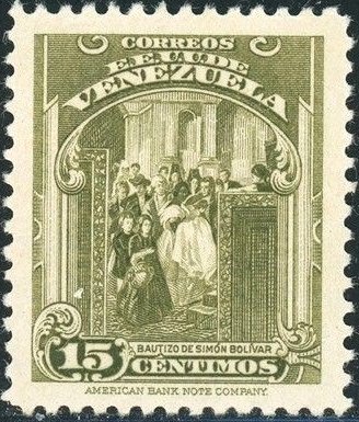 Visibility: public Image owner: none postage 15c ol issue=Bolivar death 110th d=Bolivar christening unwmk perf=12 Crops No visible images cropped from this one. Measurements Resolution is unknown. Source Source name: Colnect File URL: http://i.colnect.net/b/5353/702/Bolivar-s-baptism.jpg Uploaded February 6, 2020, 12:39 am by Stan Shebs |