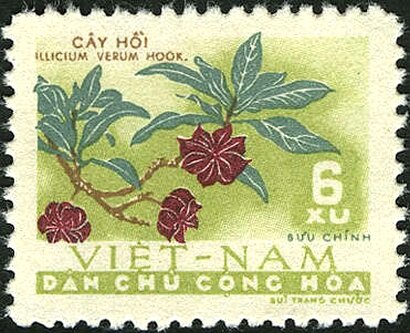 Visibility: public Image owner: none postage 3/1/1962 6xu dt=plants (1962 North Vietnam) unwmk Crops No visible images cropped from this one. Measurements Resolution is unknown. Source Source name: Colnect File URL: http://i.colnect.net/b/5504/260/Illicium-verum---Aniseed.jpg Uploaded February 6, 2020, 6:35 am by Stan Shebs |