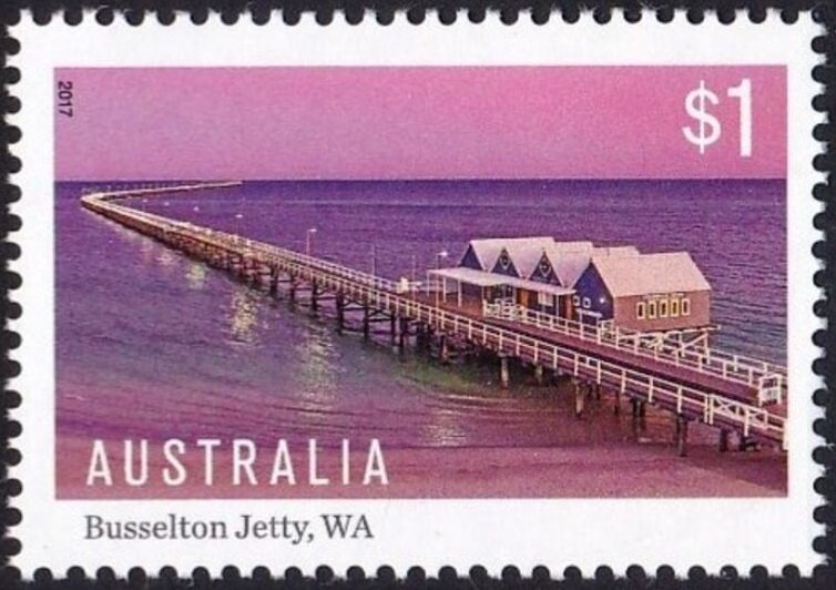 Visibility: public Image owner: none postage 2/21/2017 $1 multi issue=Australian Jetties d=Busselton Jetty, WA unwmk Crops No visible images cropped from this one. Measurements Resolution is unknown. Source Source name: Colnect File URL: http://i.colnect.net/b/6287/832/Busselton-Jetty.jpg Uploaded February 14, 2020, 2:06 am by Stan Shebs |