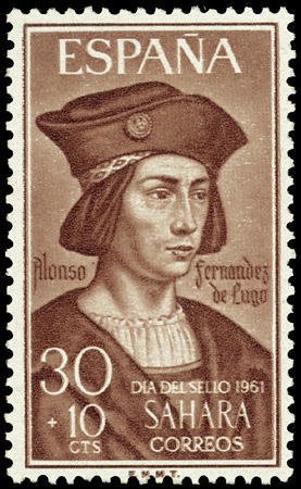 Visibility: public Image owner: none semipostal 11/23/1961 30+10c redbrn issue=Stamp Day 1961 d=Alonso Fernández de Lugo unwmk perf=13x12.5 Crops No visible images cropped from this one. Measurements Resolution is unknown. Source Source name: Colnect File URL: http://i.colnect.net/b/1396/725/Alonso-Luis-Fernández-de-Lugo.jpg Uploaded August 27, 2014, 6:17 pm by Stan Shebs |