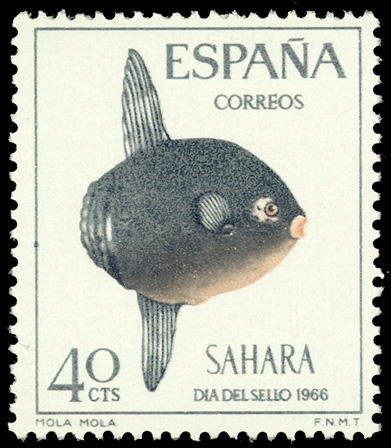 Visibility: public Image owner: none postage 11/23/1966 40c sl&pnk issue=Stamp Day 1966 dt=fishes (1966 Spanish Sahara) d=ocean sunfish (1966) unwmk perf=13 Crops No visible images cropped from this one. Measurements Resolution is unknown. Source Source name: Colnect File URL: http://i.colnect.net/b/1388/378/Ocean-Sunfish-Mola-mola.jpg Uploaded August 27, 2014, 6:17 pm by Stan Shebs |