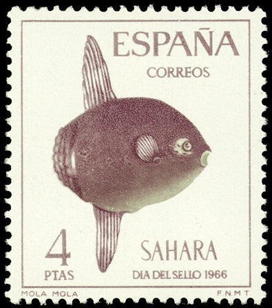 Visibility: public Image owner: none postage 11/23/1966 4p rosevio&gray issue=Stamp Day 1966 dt=fishes (1966 Spanish Sahara) d=ocean sunfish (1966) unwmk perf=13 Crops No visible images cropped from this one. Measurements Resolution is unknown. Source Source name: Colnect File URL: http://i.colnect.net/b/1388/350/Ocean-Sunfish-Mola-mola.jpg Uploaded August 27, 2014, 6:18 pm by Stan Shebs |