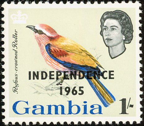 Visibility: public Image owner: none postage 2/18/1965 1sh multi issue=independence ovpt dt=birds (1963 Gambia) d=Rufous-crowned Roller ovpt=INDEPENDENCE//1965 oc=blk on=issue=1963-1sh wmk=St Edwards crown & CA perf=12.5x13 Crops No visible images cropped from this one. Measurements Resolution is unknown. Source Source name: Colnect File URL: http://i.colnect.net/b/1462/564/Purple-Roller-Coracias-naevius---overprinted.jpg Uploaded August 27, 2014, 6:40 pm by Stan Shebs |