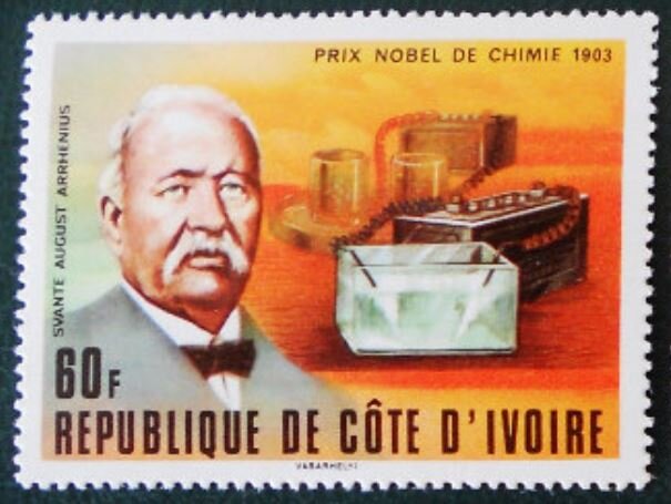 Visibility: public Image owner: none postage 5/27/1978 60fr multi dt=Nobel Prize Winners (1978 Ivory Coast) d=S. A. Arrhenius and Equipment unwmk Crops No visible images cropped from this one. Measurements Resolution is unknown. Source Source name: Colnect File URL: http://i.colnect.net/b/6495/763/Svante-August-Arrhenius.jpg Uploaded February 18, 2020, 6:18 pm by Stan Shebs |