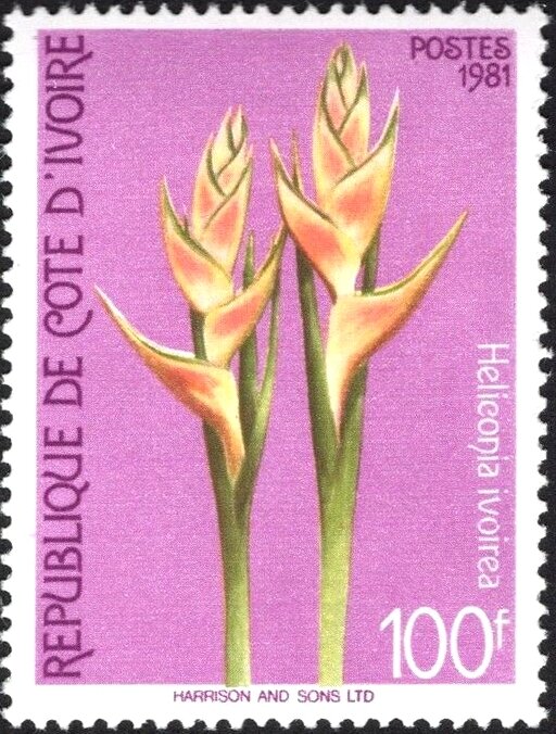 Visibility: public Image owner: none postage 7/4/1981 100fr multi dt=flowers (1981 Ivory Coast) d=Heliconia ivoirea unwmk Crops No visible images cropped from this one. Measurements Resolution is unknown. Source Source name: Colnect File URL: http://i.colnect.net/b/6142/472/Heliconia-ivoirea.jpg Uploaded February 18, 2020, 6:19 pm by Stan Shebs |