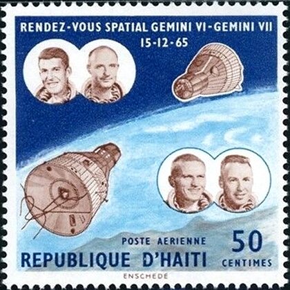 Visibility: public Image owner: none airmail 5/3/1966 50c multi issue=Gemini 6 & Gemini 7 rendezvous unwmk Crops No visible images cropped from this one. Measurements Resolution is unknown. Source Source name: Colnect File URL: http://i.colnect.net/b/5725/061/Rendezvous-of-Gemini-VI-and-VII.jpg Uploaded February 18, 2020, 7:44 pm by Stan Shebs |