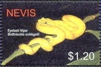 Visibility: public Image owner: none postage 1/10/2005 $1.20 multi issue=Reptiles and Amphibians 2005 dt=reptiles and amphibians (2005) d=eyelash viper Bothriechis schlegelii wmk=crown & CA Crops No visible images cropped from this one. Measurements Resolution is unknown. Source Source name: Colnect File URL: http://i.colnect.net/b/5837/410/Eyelash-viper.jpg Uploaded February 21, 2020, 7:35 pm by Stan Shebs |