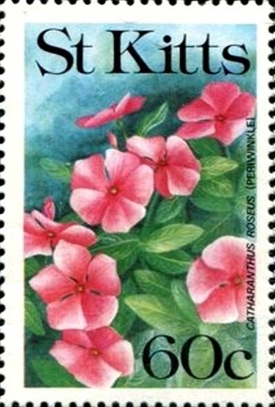 Visibility: public Image owner: none postage 5/8/1991 60c multi dt=flowers (1991 St. Kitts) d=Catharanthus roseus (1991 St. Kitts) wmk=crown & CA spiral perf=13.75 Crops No visible images cropped from this one. Measurements Resolution is unknown. Source Source name: Colnect File URL: http://i.colnect.net/b/5918/043/Catharanthus-roseus.jpg Uploaded February 21, 2020, 10:14 pm by Stan Shebs |