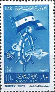 Visibility: public Image owner: none postage 8/29/1961 10m issue=Navy Day 1961 d=Flag - Ships Wheel - Battleship wmk=UAR perf=13.5x13 Crops No visible images cropped from this one. Measurements Resolution is unknown. Source Source name: Colnect (old) File URL: http://i.colnect.net/images/f/1308/712/Flag---Ship--s-Wheel---Battleship.jpg Uploaded March 25, 2013, 5:11 am by Stan Shebs |
