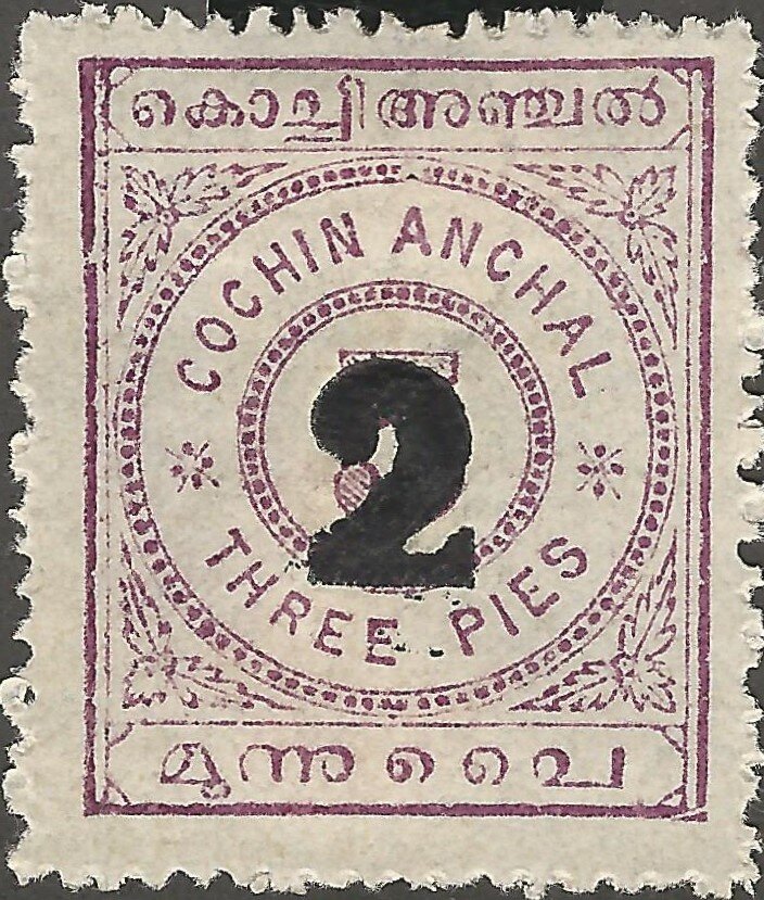 Type: stamp Issuer: Cochin Date: 1909 Denom: ?