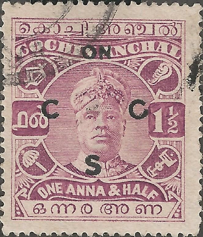 Type: stamp Issuer: Cochin Date: 1921 Denom: ?