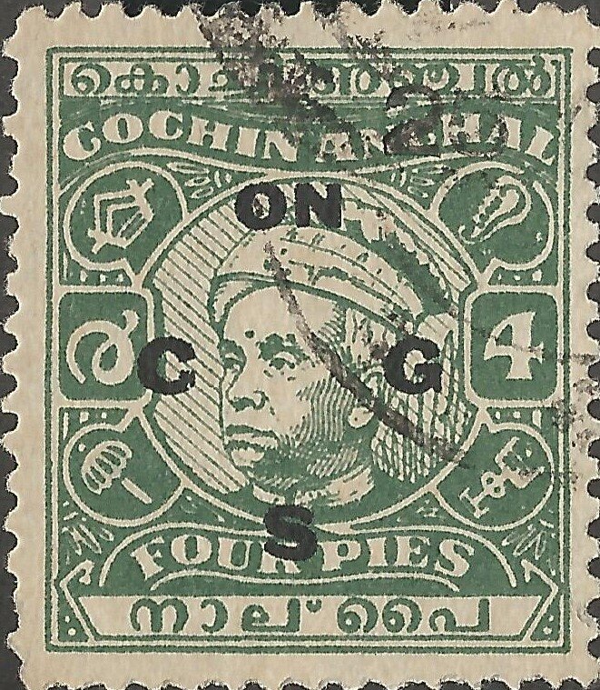 Type: stamp Issuer: Cochin Date: 1948 Denom: ?