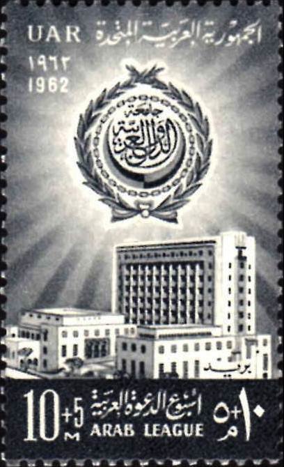 Visibility: public Image owner: none postage 3/22/1962 10+5m issue=Arab Publicity Week d=Arab League Building & Arab League Emblem wmk=UAR perf=13.5x13 Crops No visible images cropped from this one. Measurements Resolution is unknown. Source Source name: Colnect File URL: http://i.colnect.net/b/1308/727/Arab-League-Building---emblem.jpg Uploaded August 27, 2014, 7:15 pm by Stan Shebs |