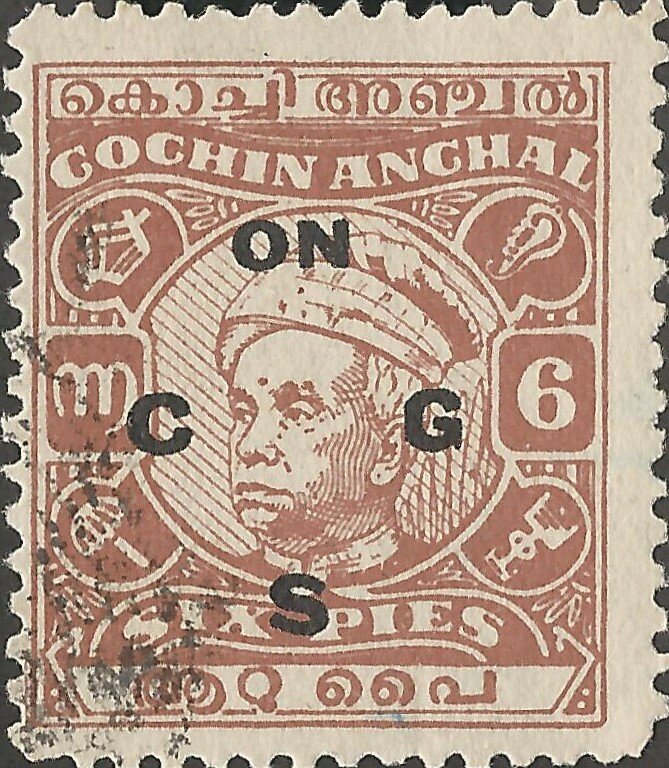 Type: stamp Issuer: Cochin Date: 1948 Denom: ?