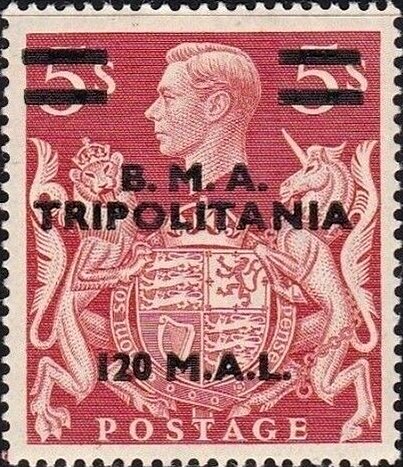 Visibility: public Image owner: none postage 7/1/1948 120l dlred issue=1948 d=King George VI & arms of Britain ovpt=B.M.A.//TRIPOLITANIA//value oc=blk on=issuer=Great Britain-1939-5sh-dlred wmk=crown & large GVIR Crops No visible images cropped from this one. Measurements Resolution is unknown. Source Source name: Colnect File URL: http://i.colnect.net/b/5882/678/British-Stamp-Overprinted--BMA-Tripolitania-.jpg Uploaded February 27, 2020, 10:26 pm by Stan Shebs |