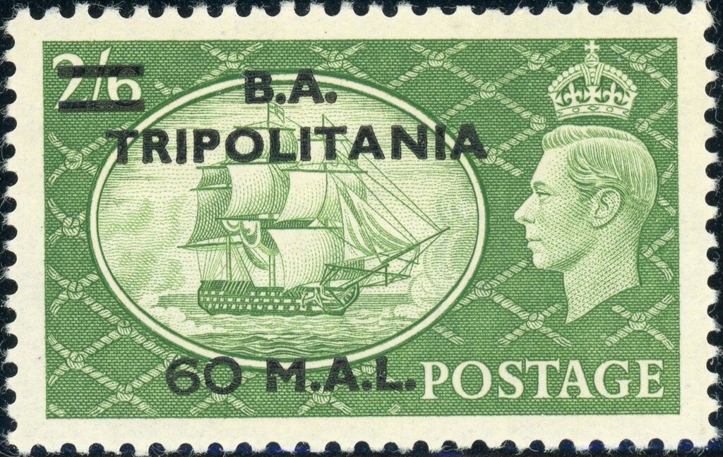 Visibility: public Image owner: none postage 5/3/1951 60l grn issue=1951 d=HMS Victory & King George VI ovpt=B. A.//TRIPOLITANIA//value oc=blk on=issuer=Great Britain-1951-2sh6p-grn wmk=crown & GVIR perf=11x12 Crops No visible images cropped from this one. Measurements Resolution is unknown. Source Source name: Colnect File URL: http://i.colnect.net/b/5499/587/¨British-Stamp-Overprinted--BA-Tripolitania-.jpg Uploaded February 27, 2020, 10:27 pm by Stan Shebs |