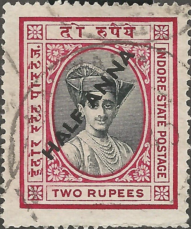 Visibility: public Image owner: none postage 8/1/1940 1/2a d=Holkar XIV oc=blk on=2r Crops No visible images cropped from this one. Measurements Resolution is unknown. Source Source name: Colnect File URL: http://i.colnect.net/b/6501/639/Maharaja-Yeshwant-Rao-Holkar-II-surcharged.jpg Uploaded March 3, 2020, 9:15 pm by Stan Shebs |