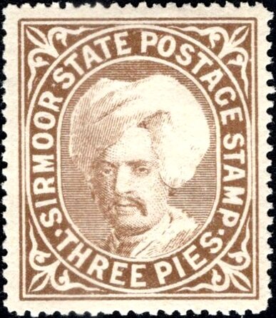 Type: stamp Issuer: Sirmoor Date: 1885 Denom: ?