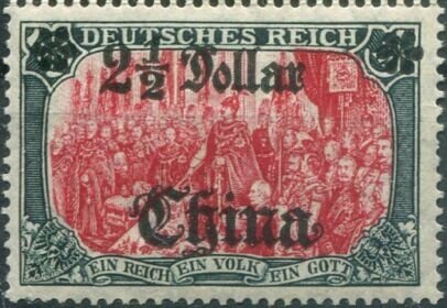 Visibility: public Image owner: none Current identification: postage 1905 $2 1/2 sl&car d=Wilhelm II speaking (Deutsches Reich) ovpt=China(fraktur)//value oc=blk on=issuer=Germany-1902-5m unwmk Crops No visible images cropped from this one. Measurements Resolution is unknown. Source Source name: Colnect File URL: http://i.colnect.net/b/6203/921/›-Overprint-on--Germania-.jpg Uploaded March 4, 2020, 10:06 pm by Stan Shebs |