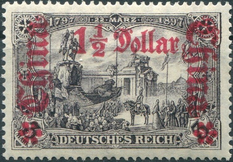 Visibility: public Image owner: none Current identification: postage 1906 $1 1/2 blkvio issue=1906 d=unveiling (Deutsches Reich) ovpt=China(fraktur)//value oc=blk on=issuer=Germany-1905-3m wmk=lozenges Crops No visible images cropped from this one. Measurements Resolution is unknown. Source Source name: Colnect File URL: http://i.colnect.net/b/6203/933/›-Overprint-on--Germania-.jpg Uploaded March 4, 2020, 10:06 pm by Stan Shebs |