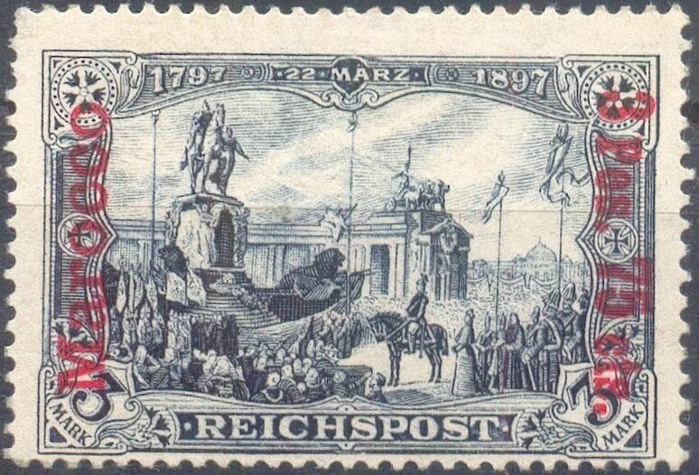 Visibility: public Image owner: none postage 10/1/1900 3p75c blkvio d=unveiling (Reichspost) ovpt=Marocco//value oc=blk on=issuer=Germany-1900-3m unwmk Crops No visible images cropped from this one. Measurements Resolution is unknown. Source Source name: Colnect File URL: http://i.colnect.net/b/6220/494/Representations-of-the-German-Empire-with-overprint.jpg Uploaded March 4, 2020, 10:39 pm by Stan Shebs |