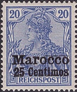 Visibility: public Image owner: none Current identification: postage 10/1/1905 25c ultra issue=1905 d=Germania (Deutsches Reich) ovpt=Marocco fraktur//value oc=blk on=issuer=Germany-1902-20pf unwmk perf=14x14.25 Crops No visible images cropped from this one. Measurements Resolution is unknown. Source Source name: Colnect File URL: http://i.colnect.net/b/6223/040/Germania-with-overprint.jpg Uploaded March 4, 2020, 10:40 pm by Stan Shebs |