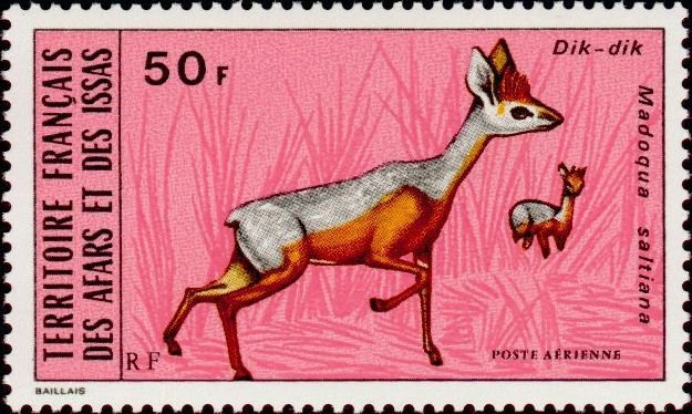 Visibility: public Image owner: none airmail 2/26/1973 50fr multi issue=wild animals dt=wild animals (1973 Afars) d=Madoqua saltiana unwmk perf=13 Crops No visible images cropped from this one. Measurements Resolution is unknown. Source Source name: Colnect File URL: http://i.colnect.net/b/793/022/Salt-s-Dik-Dik-Madoqua-saltiana.jpg Uploaded April 25, 2020, 6:26 pm by sanguesa |