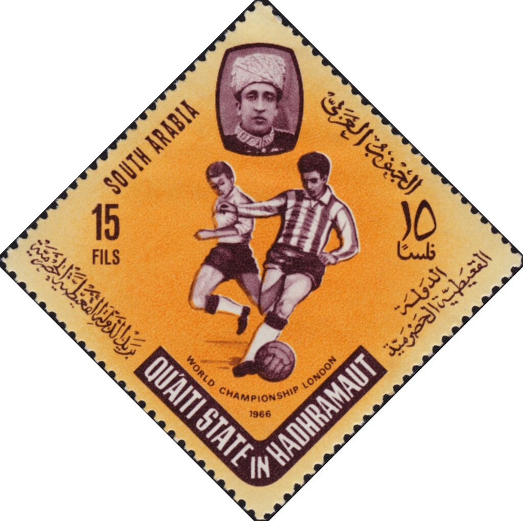 Visibility: public Image owner: none Current identification: Quaiti State in Hadhramaut postage 8/11/1966 15f pur&org issue=World Cup Football Championship a d=footballers unwmk perf=13.5 Crops No visible images cropped from this one. Measurements Resolution is unknown. Source Source name: Colnect File URL: http://i.colnect.net/b/5627/253/Football-World-Cup-London.jpg Uploaded April 27, 2020, 10:40 pm by sanguesa |