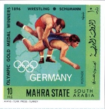 Visibility: public Image owner: none postage multi issue=German Olympic champions b d=Wrestling - Schumann, 1896 imperf Crops No visible images cropped from this one. Measurements Resolution is unknown. Source Source name: Colnect File URL: http://i.colnect.net/b/4590/755/German-Olympic-Champions.jpg Uploaded May 21, 2020, 7:28 pm by sanguesa |