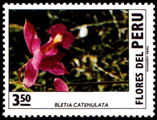 Visibility: public Image owner: none postage 12/29/1972 3.50s multi dt=flowers (1972 Peru) d=Bletia catenulata unwmk Crops No visible images cropped from this one. Measurements Resolution is unknown. Source Source name: Colnect File URL: http://i.colnect.net/images/b/1406/450/Peruvian-flowers---Bletia-catenulata.jpg Uploaded August 27, 2014, 7:35 pm by Stan Shebs |