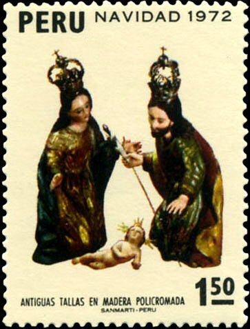 Visibility: public Image owner: none postage 11/30/1972 1.50s multi issue=Christmas 1972 dt=Huamanga sculptures unwmk Crops No visible images cropped from this one. Measurements Resolution is unknown. Source Source name: Colnect File URL: http://i.colnect.net/images/b/1431/438/Christmas---Holy-Family-wood.jpg Uploaded August 27, 2014, 7:35 pm by Stan Shebs |