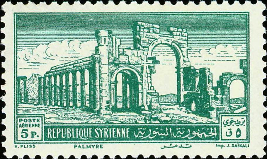Visibility: public Image owner: none airmail 12/8/1952 5p grn issue=1952 unwmk Crops No visible images cropped from this one. Measurements Resolution is unknown. Source Source name: Colnect File URL: http://i.colnect.net/b/1481/498/Ruins-of-Palmyra.jpg Uploaded August 27, 2014, 7:38 pm by Stan Shebs |