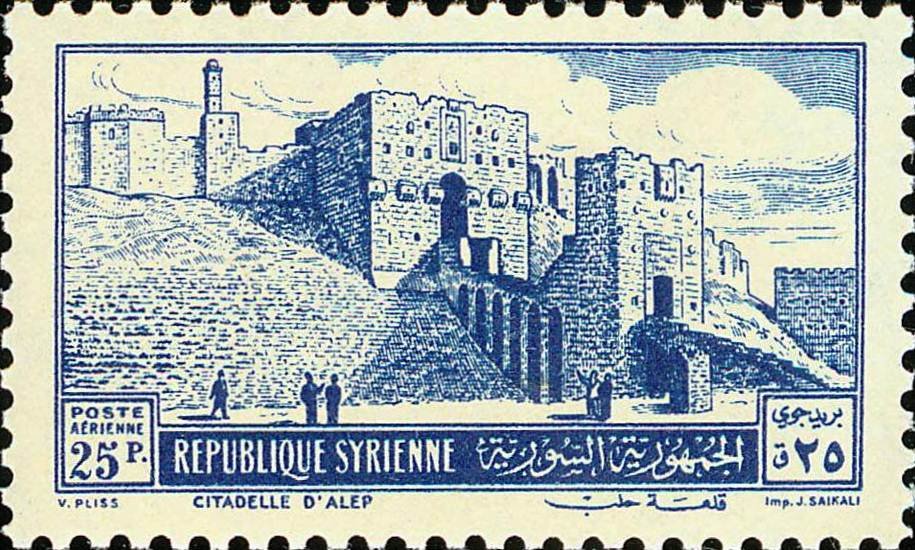 Visibility: public Image owner: none airmail 12/8/1952 25p dkbl issue=1952 unwmk Crops No visible images cropped from this one. Measurements Resolution is unknown. Source Source name: Colnect File URL: http://i.colnect.net/b/1481/500/Citadel-at-Aleppo.jpg Uploaded August 27, 2014, 7:38 pm by Stan Shebs |