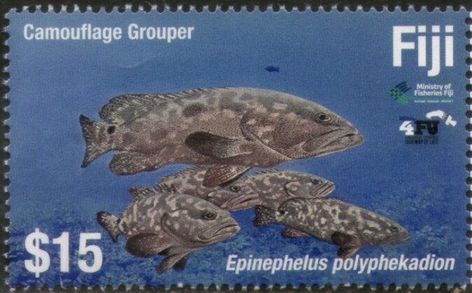 Visibility: public Image owner: none postage 9/16/2019 $15 multi issue=Fishes 2019 d=Epinephelus polyphekadion unwmk Crops No visible images cropped from this one. Measurements Resolution is unknown. Source Source name: Colnect File URL: http://i.colnect.net/b/6257/112/Camouflage-Grouper.jpg Uploaded January 1, 2021, 12:37 am by Stan Shebs |