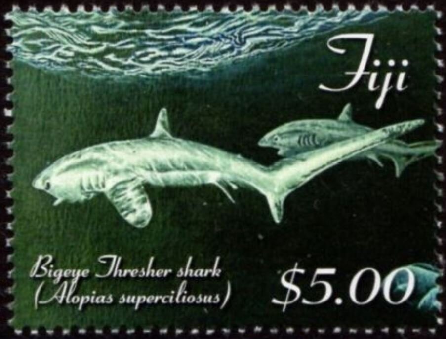 Visibility: public Image owner: none postage 7/28/2014 $5.00 multi issue=Sharks of Fiji dt=sharks of Fiji d=Bigeye Thresher Shark unwmk Crops No visible images cropped from this one. Measurements Resolution is unknown. Source Source name: Colnect File URL: http://i.colnect.net/b/6478/880/Bigeye-Thresher-shark.jpg Uploaded January 1, 2021, 12:41 am by Stan Shebs |