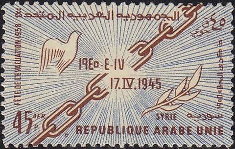 Visibility: public Image owner: none postage 5/15/1958 45p redbrn&dlbl issue=12th Anniversary of the British-French Troop Evacuation d=Airmail wmk=national emblem multiple Crops No visible images cropped from this one. Measurements Resolution is unknown. Source Source name: Colnect File URL: http://i.colnect.net/b/1463/957/Broken-chain.jpg Uploaded August 27, 2014, 7:41 pm by Stan Shebs |