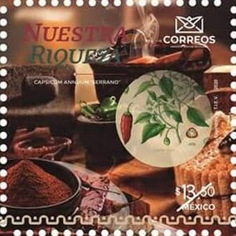 Visibility: public Image owner: none postage 12/7/2020 13.50p multi issue=Food of Mexico unwmk Crops No visible images cropped from this one. Measurements Resolution is unknown. Source Source name: Colnect File URL: http://i.colnect.net/b/7502/312/Serrano-Chili-Pepper-Capsicum-annuum.jpg Uploaded January 25, 2021, 5:05 am by Stan Shebs |